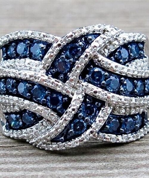 Pure 925 Sterling Silver Blue Sapphire Diamond Wedding Enhancer Ring 14K White Gold Plated